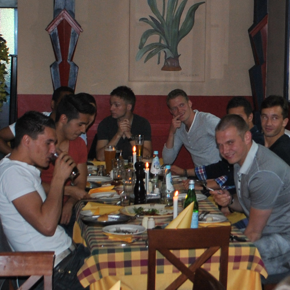 Man soll die Feste bekanntlich feiern, wie sie fallen! Dass der Aufstieg der eisernen Reserve aus der Oberliga in die Regionalliga würdig zelebriert werden musste, stand also außer Frage. Am Montag, 14.05.2012 lud der Verein seine hoffnungsvollen Nachwuchskicker zum feierlichen Saisonabschluss in die Trattoria Tresoli in Friedrichshagen. Nach einigen kulinarischen Köstlichkeiten bedankte sich Hermann Andreev, sportlicher Leiter des Nachwuchsleitungszentrums, bei Trainern, Spielern und dem Funktionsteam für eine tolle Saison, an deren Ende der verdiente Aufstieg stand.