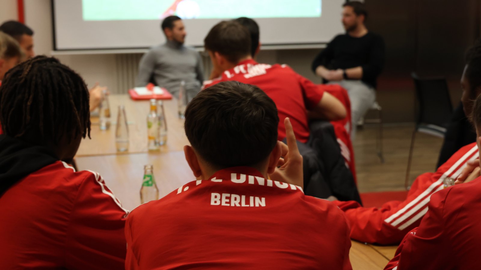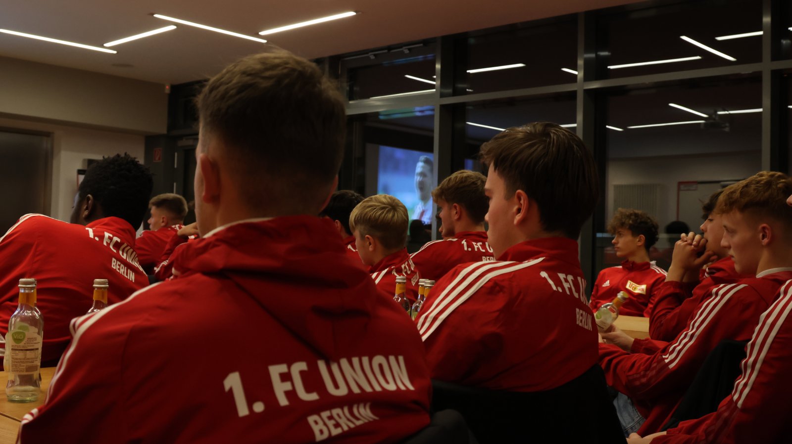 Steven Skrzybski, ehemaliger Spieler im Nachwuchs- und Lizenzspielerbereich des 1. FC Union Berlin, hat die spielfreie Zeit für einen Besuch im Nachwuchsleistungszentrum und den intensiven Austausch mit Spielern und Trainern der Eisernen genutzt.