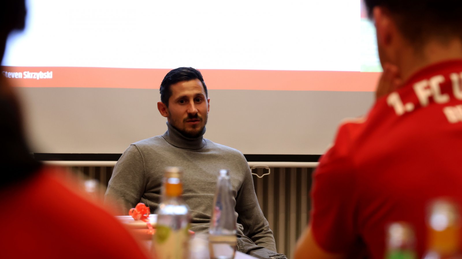 Der Stürmer, der mittlerweile für Holstein Kiel auf Torejagd geht, war für mehrere Tage auf dem Trainingsgelände in Köpenick unterwegs und blickte hinter die Kulissen. Skrzybski hospitierte bei einer Trainingseinheit der A-Junioren und deren Spiel gegen Leipzig am vergangenen Samstag. Außerdem leitete er selbst eine Krafteinheit für Spieler der U17 und U19 im Trainingstrakt der Profis sowie ein spezielles Training für Angreifer.