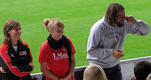 Am letzten Tag der Projektwoche fand eine große Abschlussveranstaltung statt. Zuerst konnten im Mellowpark Bilder von der Projektwoche und eine kleine BMX Show bestaunt werden, dann ging es rüber zum Stadion An der Alten Försterei. Hier stellten sich, moderiert durch Christian Arbeit, Christian Beeck, Benjamin Weiß (U23) und zwei Spielerinnen unserer 1. Frauen, Andrina Braumann und Sabrina Großer, den Fragen der Kinder.