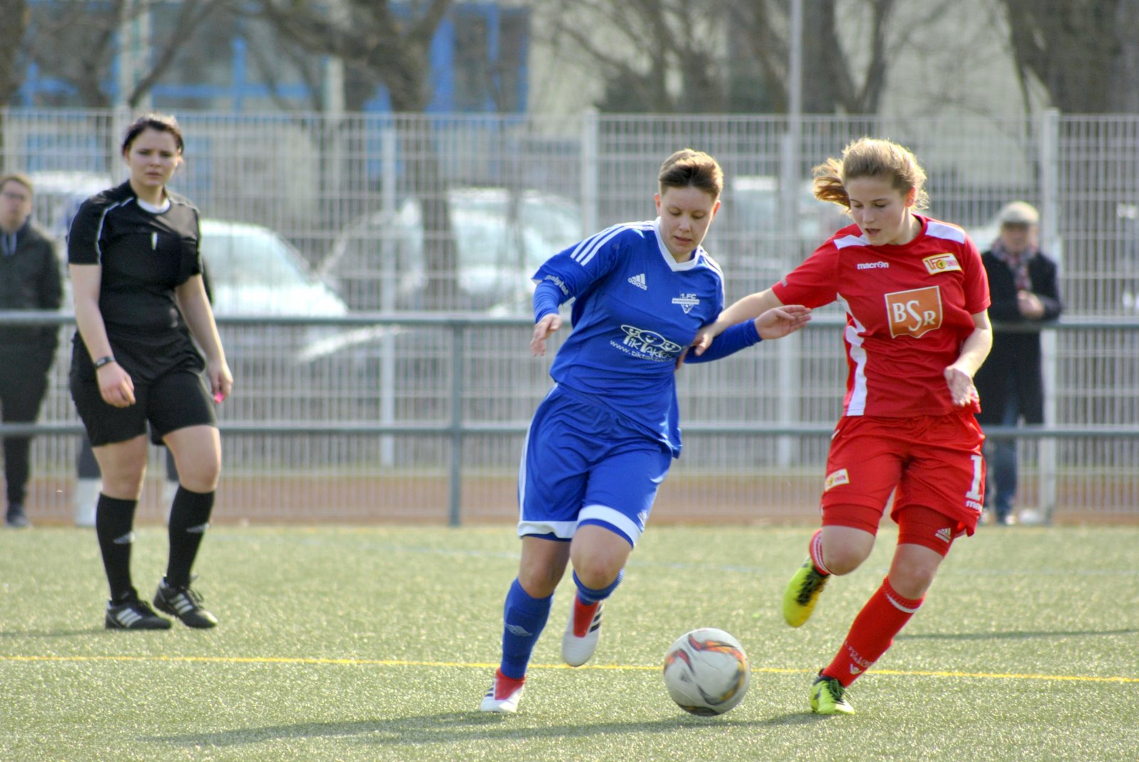 Die Anreise verlief problemlos, das Wetter war toll und der Kunstrasen zwar recht groß, aber auch sehr stumpf. Die ersten Minuten des Spiels verschliefen die jungen Unionerinnen. Ein Weitschuss der Gastgeberinnen ging an den Pfosten und Monique Eichhorn weckte ihre Mannschaft mit einer Parade (2.). Nach zehn Minuten erarbeitete sich Union mehr Ballsicherheit und kontinuierliche Chancen. Die besten Möglichkeiten hatten Lisa Heiseler (10.) nach Vorlage von Lisa Gierth, die sehr viele Angriffe durch tiefe Bälle einleitete, Nathalie Scheffler (16.) nach einem Freistoß, sowie erneut Lisa Heiseler mit einem Kopfball nach einer Ecke, der an die Latte ging. In der 21. Minute drang Außenverteidigerin Katharina Bödeker in den Strafraum ein, schoss an den langen Pfosten und der Abpraller landete bei Maria-Pia Zander-Zeidam, die zum 1:0 vollstreckte. Vor der Pause gab es noch viele gefährliche Situationen vor dem Neubrandenburger Tor, die allerdings nicht zu einer Ergebnisveränderung führten.