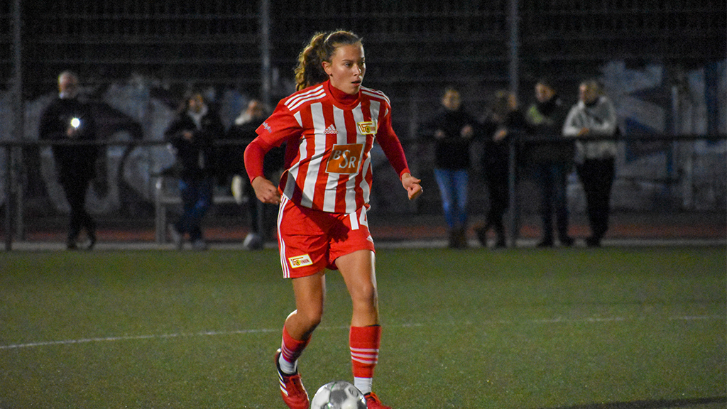 Die neu formierte Mannschaft aus Köpenick nahm die Favoritenrolle im Norden Berlins zwar an und hatte viel Ballbesitz, tat sich trotz einiger Abschlüsse jedoch insgesamt schwer mit dem zweikampfstarken Gegner auf dem engen Platz. Die beste Gelegenheit in einer zähen ersten Halbzeit hatte Kapitänin Lisa Heiseler, deren Schuss in der 15. Minute jedoch von der Torhüterin zur Ecke gelenkt wurde. Neben eines Distanzschusses von Luca Scheel, der haarscharf am Torwinkel vorbeiflog (29.), sowie einer weiteren Gelegenheit durch Pauline Wimmer, die das Gehäuse jedoch ebenfalls knapp verfehlte (41.), konnten die Rot-Weißen bei winterlichen Temperaturen auf dem Kunstrasenplatz in Pankow in der ersten Halbzeit jedoch keine weitere Torgefahr ausstrahlen.