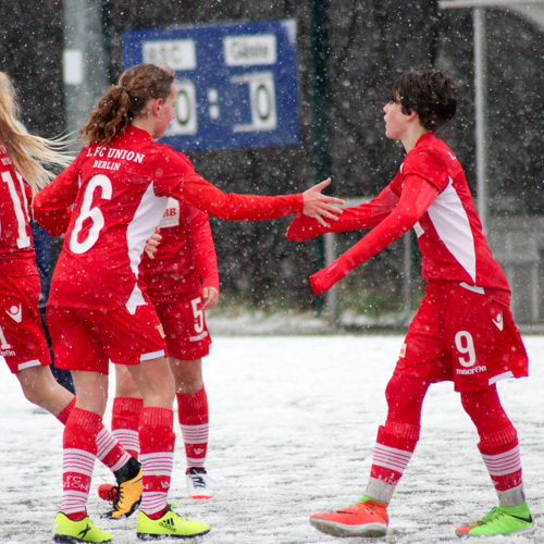 Beginnen wir mit den ältesten Mädels. Die U17-Juniorinnen mussten nach vielen Jahren in der Juniorinnen-Bundesliga den Abstieg hinnehmen und spielen nun in der Verbandsliga. Gleich am 1. Spieltag trafen die Mädels auf den 1. FC Lübars und mussten sich trotz spielerischer Überlegenheit mit 0:2 geschlagen geben. Das sollte allerdings die einzige Niederlage bis zum heutigen Zeitpunkt bleiben, denn alle folgenden Spiele konnten erfolgreich gestaltet werden. Auch im AOK-Pokal war das Team erfolgreich und konnte die ersten beiden Runden meistern. Im letzten Spieltag der Hinrunde geht es um das Überwintern an der Tabellenspitze. Bei einem Sieg gegen die Mädchen von Berolina Mitte, können die U17-Juniorinnen den Platz an der Sonne einnehmen.