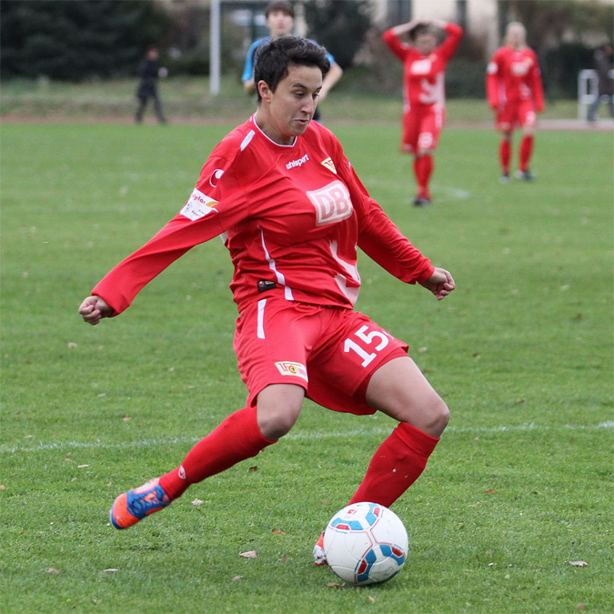 Mit dem MSV Wernigerode kam am vergangenen Sonntag der Aufsteiger und zeitgleich Tabellenletzte an die Dörpfeldstraße. Für die Unionerinnen war es der richtige Gegner, um den Frust der letzten Woche abzubauen. Die Union-Mannschaft wurde auf einige Positionen verändert, so rückten die Spielerinnen Josephine Ahlswede, Lina Müller, Kristina Böhm, Dana Hillmann und Anne Stein in die Anfangsformation. Das Spiel begann mit der schnellen Führung zur Frustbewältigung. Nach nur 18 Minuten führten die Eisernen Ladies durch die Tore von Anne Stein, Bianca Joswiak und Lina Müller schon mit 3:0. Wernigerode stellte sich nicht hinten rein und war trotz des klaren Rückstandes immer bemüht Akzente zu setzen, ohne aber gefährlich vor das Unioner Tor zu kommen. Union ließ in dieser Phase einige gute Möglichkeiten aus. Erst in den letzten zehn Minuten der ersten Halbzeit konnten dann noch vier Treffer bejubelt werden. Dana Hillmann mit einem Distanzschuss, Julia Schlotte nach einem Eckball, Anne Stein nach einer guten direkten Kombination und nochmals Julia Schlotte mit einem direkt verwandelten Freistoß schraubten das Ergebnis auf den Halbzeitstand von 7:0 hoch.
