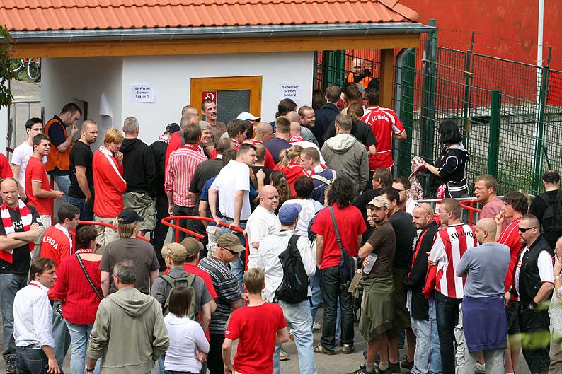 Die vorerst letzte Gelegenheit, Union gegen einen Bundesligisten spielen zu sehen, bietet sich am kommenden Samstag, 25. Juli um 15:30 Uhr gegen den FC Schalke 04. Karten für dieses Spiel sind auch weiterhin im Ticket Office, An der Wuhlheide 263 und im Fanshop (nur Stehplatzkarten), Hämmerlingstraße 88 erhältlich.
