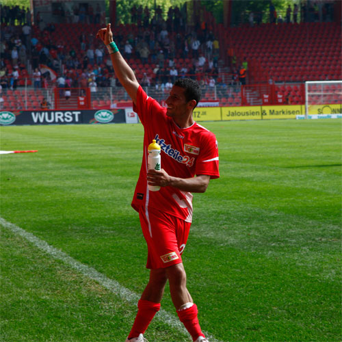 Ein denkwürdiger zweiter Abschnitt begann zunächst verhaltener, als es die mitreißenden ersten 45 Minuten hätten erwarten lassen. Zwar setzte Union weiter die Impulse, doch waren Torchancen in der Anfangsviertelstunde Mangelware. Das nimmermüde Publikum musste bis zur 65. Spielminute warten, doch die Geduld zahlte sich aus. Dominic Peitz nutzte eine Freistoßverlängerung von Macchambes Younga-Mouhani und schob zum 2:1 ein. Aber auch die abermalige Führung hatte nicht lange Bestand, denn Jiayi Shao hämmerte einen direkten Freistoß aus 30 Metern in die Maschen (74.). Bei diesem Geschoss war für den fehlerlosen Jan Glinker im Union-Tor nichts zu machen. Als die letzten zehn Minuten anbrachen, hatte man das Gefühl, dass ein Tor für Union jederzeit möglich war. Dass es dann der Youngster Christopher Quiring war, der mit seinem ersten Zweitligatreffer das Stadion beben ließ, passte in den Rahmen des Spiels wie die Faust aufs Auge. Die gesamte Union-Bank sprang auf, als der stets eifrige Flügelflitzer flach und präzise aus 14 Metern einnetzte (83.). Den bewegenden Schlusspunkt setzte dann Rekordtorjäger Karim Benyamina höchstpersönlich. Der gerade eingewechselte Chinedu Ede bereitete mittels eines präzisen Passes den Weg für dessen 87. Pflichtspieltor aus sieben Metern in die lange Ecke (84.). Auf den Doppelschlag folgte wenig später der Abpfiff und eine ergreifende Ehrenrunde der Mannschaft. Die Zuschauer feierten das Team minutenlang, das sich anschließend mit einer nicht enden wollenden Autogrammstunde bedankte. Der inoffizielle Titel des "Berlin-Brandenburg-Meisters" ist dem 1. FC Union Berlin sicher, der sich in dieser Saison in der Region mit je einem Sieg und einem Unentschieden gegen Energie Cottbus und Hertha BSC schadlos gehalten hat.