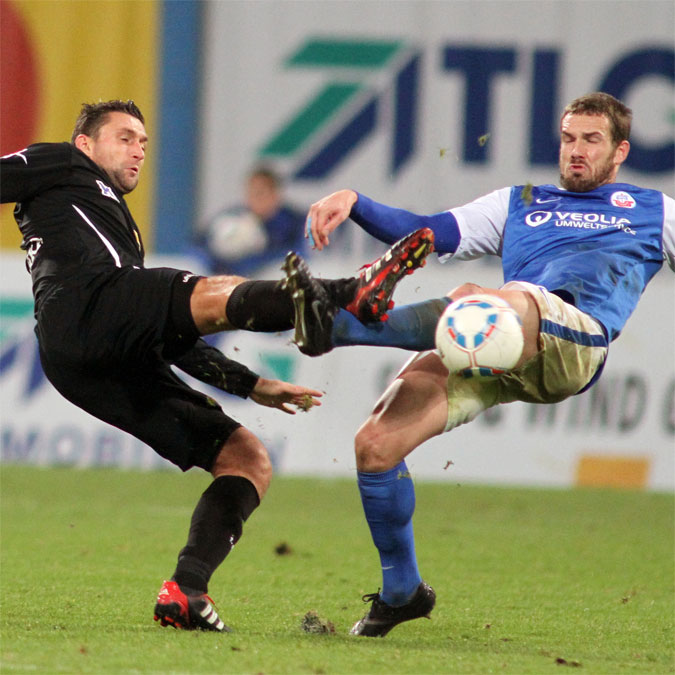 Flutlicht, Freitagabend, Duell zweier Traditionsmannschaften: Das Rostocker Ostseestadion beherbergte zum Auftakt des 16. Spieltages 14.000 Zuschauer, die sich über 90 Minuten einen stimmungsvollen Schlagabtausch lieferten. Unter ihnen sahen etwa 2.200 eiserne Schlachtenbummler eine sich umgehend auf Betriebstemperatur befindliche Gastmannschaft. Vielleicht war es ein gutes Omen, dass wie schon in Braunschweig beim ersten Auswärtssieg der Saison, auch die Partie an der Küste mit Verspätung angepfiffen wurde. Nach der fünfzehnminütigen Verzögerung betrat die Union-Elf energisch den Rasen. Die Gäste aus Berlin-Köpenick hatten eindeutig mehr Ruhe in den Aktionen und hätten spätestens nach sechs Minuten in Front liegen müssen. Allein vor Hansas Keeper Kevin Müller verpasste Silvio die Chance zum 1:0. Bei den Hausherren kam nach dieser turbulenten Anfangsphase erste Ungeduld auf und Union verzeichnete beste Gelegenheiten im Minutentakt. Erst vergab John Jairo Mosquera nach feiner Kombination über Torsten Mattuschka und bei dem Linksschuss von Marc Pfertzel aus etwa 18 Metern fehlten dann nur Zentimeter (13./14.). Hansa plagte merklich die Angst vor der eigenen Courage. Den Vorwärtsgang hatte man der Hansa-Kogge offenbar ausgebaut. Union hatte Spiel und Gegner im Griff, was fehlte, waren die fälligen Treffer. Die nächste Chance datiert aus der 28. Spielminute, als Christopher Quiring auf und davon war und nur die Grätsche von Pavel Kostal zwischen den Youngster und seinen Torerfolg platzte. Die Mannschaft von Uwe Neuhaus schien sich ihrer Sache etwas zu sicher, weshalb Rostock zehn Minuten vor dem Halbzeitpfiff besser in die Begegnung und auch zur ersten Torchance kam. Doch Timo Perthel flatterten offensichtlich die Nerven beim Anblick von Jan Glinker, der lange stehen blieb und die Situation bereinigte. Mit einer gefühlten 2:0-Führung ging es für Union in die Pause.