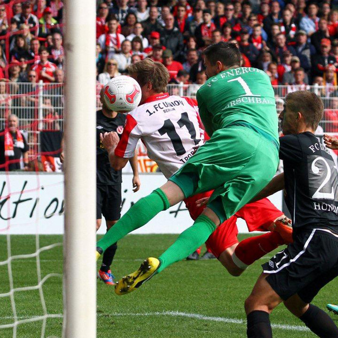 Beide Trainer verzichteten nach dem Seitenwechsel auf personelle Wechsel. Was sich jedoch veränderte, war der Zwischenstand. Ein Schuss von Daniel Adlung fand - von Daniel Haas nicht zu verhindern - den Weg ins Ziel (50.). Das Gegentor war aber keineswegs ein Wirkungstreffer. Wütende Köpenicker Angriffe folgten und was Adam Nemec in aussichtsreicher Position zunächst nicht gelang, besorgte kurz darauf Christopher Quiring. Mit viel Übersicht spielte Simon Terodde in den Lauf des eisernen Eigengewächses, der das Leder frech über den aus seinem Kasten eilenden Kirschbaum hinweg zur neuerlichen Führung über die Linie spitzelte (55.). Das sollte es aus Sicht der Eisernen aber noch nicht gewesen sein. Die Gier nach dem Sieg war in allen Aktionen spürbar und erhielt durch weitere Chancen ein Gesicht. Marc Pfertzel und Torsten Mattuschka probierten es dabei aus der Entfernung, packten in ihre Schüsse aber zu wenig Genauigkeit (62./63.). Es steckte Schmackes in der Partie, die anschließend turbulent wurde. Fabian Schönheim foulte Boubacar Sanogo im Strafraum und sah dafür Rot (70.). Den folgenden Strafstoß parierte Daniel Haas gegen den gefoulten Schützen Sanogo und fachte das Feuer in seinen Kollegen erneut an. Der unbedingte Wille, die Punkte nach der bitteren Erfahrung in Aue dieses Mal nicht mehr herzugeben, beseelte den leidenschaftlichen Auftritt des Gastgebers. Mannschaftlich geschlossen überstand Union die letzten Spielminuten und erhöhte das Endergebnis durch den eiskalten Kontertreffer von Björn Jopek auf 3:1.