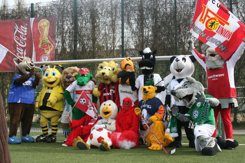 Und Keule war dabei! Maskottchen von überall spielten irgendwie Fußball. Es gab viele Tore und Karten in vielen Farben und viel Spaß. Keule war voll dabei wie man auf dem bunten Gruppenfoto sieht.