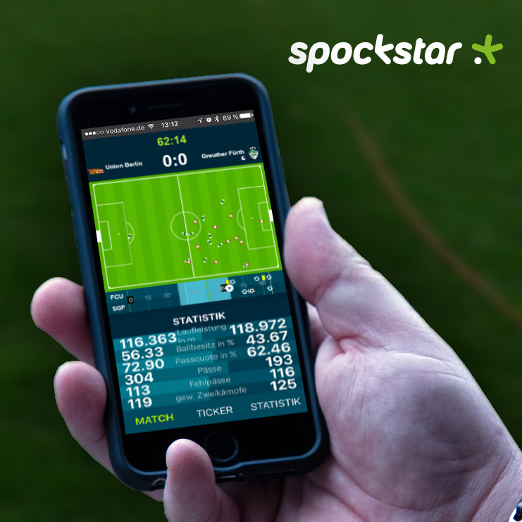 In Kooperation mit dem Start-Up spockstar aus Berlin-Rummelsburg präsentieren wir hier exklusiv die Live-Visualisierung aller Bundesligaspiele des 1. FC Union Berlin. Dabei werden die durch Kameras erfassten Positionsdaten der Spieler und des Balls in einer 2D-Ansicht animiert.