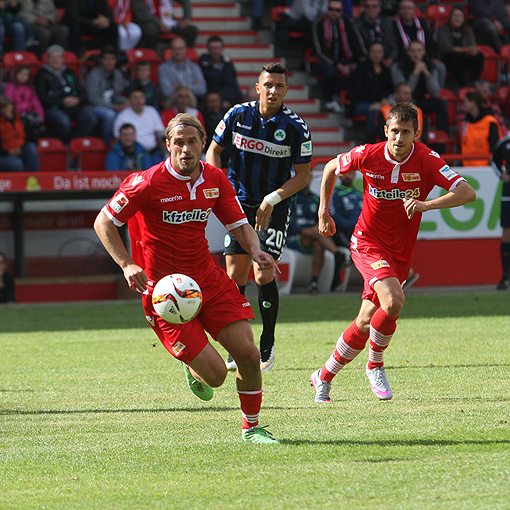 Die Kontrahenten agierten von Beginn an hochkonzentriert und engagiert. Die erste gute Möglichkeit hatten zwar die Gäste aus dem Frankenland (11.), aber die Hausherren rissen zusehends die Spielkontrolle an sich. Mit der ersten guten Chancen gelang den Eisernen der Führungstreffer. Benjamin Kessel brachte einen präzisen Ball flach vor den Fürther Strafraum. Steven Skrzybski entwischte seinem Gegenspieler und drückte den Ball zum 1:0 über die Linie. Mit der Führung im Rücken wurde Union immer stärker. Sowohl Sören Brandy (22.) als auch Damir Kreilach (28./30.) hätten vor der Pause erhöhen können. Zur Pause blieb es jedoch bei der hochverdienten 1:0-Führung.