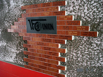 Darüber hinaus half uns eine Fan-Malerkolonne (u.a. Skorpio, anno85 und unionermo) mit der Verschönerung der Wände. Die ersten 60 Steine sind rund um den Zentrumsstein mit Union-Logo installiert. Das Ergebnis ist jetzt schon klasse und kann beim morgigen Testspiel gegen den Ludwigsfelder FC (14 Uhr, Kunstrasenplatz) erstmals besichtigt werden. 30 Minuten vor der Partie, in der Halbzeitpause und bis eine halbe Stunde nach Abpfiff können sich Neugierige ein Bild vom "Tunnel of fame" machen.
