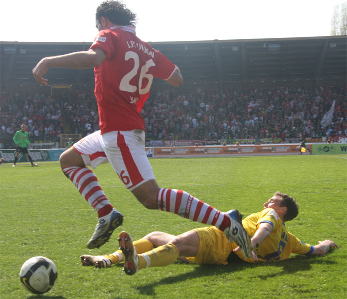 Mit einem verdienten 5:1-Heimsieg gegen den Tabellenletzten Stuttgarter Kickers wurde der alte Abstand zu Verfolger Paderborn (Sieg in Wuppertal) wieder auf beruhigende neun Zähler ausgebaut. Bei herrlichem Wetter im Friedrich-Ludwig-Jahn-Sportpark trafen Biran (4.), Dogan (25.), Sahin (59.), Gebhardt (65.) und Benyamina (80.) für den Tabellenführer. Den Ehrentreffer für die Gäste besorgte Gambo in der 75. Spielminute vor 6004 Zuschauern.