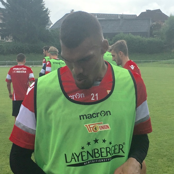 Wie schon bei der Suche nach einem zweiten Trainingsplatz war auch hier wieder Improvisationstalent gefragt. Union-Trainer Jens Keller teilte seinen Kader in zwei Mannschaften auf und setzte kurzfristig ein Trainingsspiel über 2 x 30 Minuten im Stadion Villach an. Die weiterhin angeschlagenen Fabian Schönheim und Felix Kroos, die schon vorher eine individuelle Einheit absolvierten, kamen dabei nicht zum Einsatz. Steve Kroll und Cihan Kahraman übernahmen die Rollen der Linienrichter und assistierten Schiedsrichter Dennis Rudel. Bei strömendem Regen lieferten sich die beiden Teams einen engagierten Schlagabtausch und Maxi Thiel brachte sein Team in Halbzeit eins in Führung. Doch nur wenige Minuten nach dem Seitenwechsel gab es die nächste Überraschung. Ein Gewitter setzte ein, der Regen wurde noch stärker und Jens Keller blieb nichts anderes übrig als die Einheit abzubrechen. Während die Blitze am Himmel zuckten machten sich die Profis im Bus auf den Rückweg ins Hotel um dort in der Therme zu regenerieren. Mit dem gemeinsamen Abendessen endete schließlich der dritte Tag des Trainingslagers.