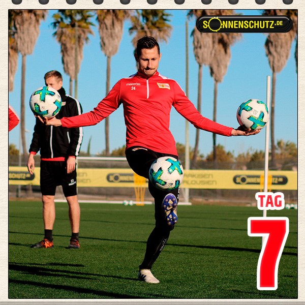 Der Freitag begann für die Union-Profis mit dem gemeinsamen Frühstück um 8:30 Uhr. Anschließend ging es mit dem Rad zum nahegelegenen Trainingsgelände.