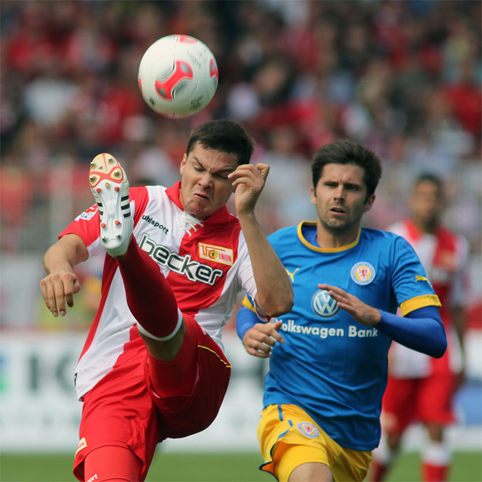 Beide Trainer hatten im Vorfeld nicht mit Komplimenten für den Gegner gegeizt und damit offenbar richtig gelegen. Es trafen zwei lauf- und kampfstarke Mannschaften aufeinander, die sich nichts schenkte und um jeden Meter kämpften. Entsprechend verbissen wurde die Partie geführt und es dauerte eine Weile, bis erste Chancen herausgespielt wurden. Drei Mal bot sich Union die Gelegenheit, in Führung zu gehen - drei Mal retteten sich die Braunschweiger. Silvios Kopfball aus Nahdistanz fand einen gegnerischen Kopf, Patrick Zoundi überlupfte Torhüter und Tor der Gäste und auch Simon Terodde brachte den Ball aus guter Position nicht im Netz unter.