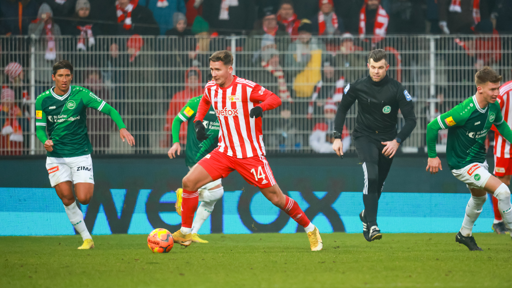 Im zweiten Testspiel der Wintervorbereitung empfing der 1. FC Union Berlin den Schweizer Erstligisten vom FC St. Gallen. Die Partie ließ einige Minuten auf ein erstes Highlight warten, dieses war dann aber ein wahrhaftiges: Sven Michel bediente Kevin Behrens per Kopf. Dieser stand mit dem Rücken zum Tor und versuchte sich an einem Fallrückzieher, der nur noch durch den Abwehrspieler Kempter vor der Linie gerettet werden konnte (22.). Keine Zeigerumdrehungen später war es der eigene Mann, der den Führungstreffer für die Eisernen verhinderte. Paul Seguin schloss mit dem starken rechten Fuß aus dem Strafraum ab und scheiterte nicht am Torhüter der St. Galler, sondern an Mitspieler Kevin Behrens, der den freien Raum nicht schnell genug verlassen konnte und den Ball ins Toraus lenkte. Doch auch die Gäste aus der Schweiz setzten immer wieder Nadelstiche nach vorn, zwangen Unions Schlussmann Lennart Grill jedoch nicht zum ernsthaften eingreifen. In der 33. Spielminute eröffnete Nachwuchstalent Aljoscha Kemlein mit einem genauen Laufpass auf Genki Haraguchi den Führungstreffer für die Hausherren aus Köpenick. Haraguchi bediente Kapitän Christopher Trimmel von der linken Außenbahn mit einer perfekten Flanke, sodass dieser ausreichend Zeit hatte, um auf Paul Seguin abzulegen, der mit einem gekonnten Schuss zum 1:0 verwandelte. Auf der Gegenseite zeigte nun auch Lennart Grill sein Können: Aus knapp 25 Meter setzte Abwehrspieler Maglica einen direkten Freistoß ab, scheiterte aber am Keeper der Unioner. Doch es sollte nicht bei der knappen Führung der Eisernen bleiben: Die Flanke von links, ursprünglich vorgesehen für die Sturmspitze der Unioner, fand über Umwege Christopher Trimmel, der am langen Pfosten zum 2:0 ins kurze Eck verwandelte (39.). Kurz vor der Halbzeit zappelte das Netz erneut. Diogo Leite brachte mit einem ungenauen Pass die Gäste wieder in die Spur. Latte Lath spitzelte den Pass weg und ging zielstrebig in den Strafraum, wo er zwar nicht den eigenen Mann fand, aber Robin Knoche aus kurzer Distanz an den Kopf lupfte und so den Anschlusstreffer vor dem Halbzeitpfiff erzwang (45.).