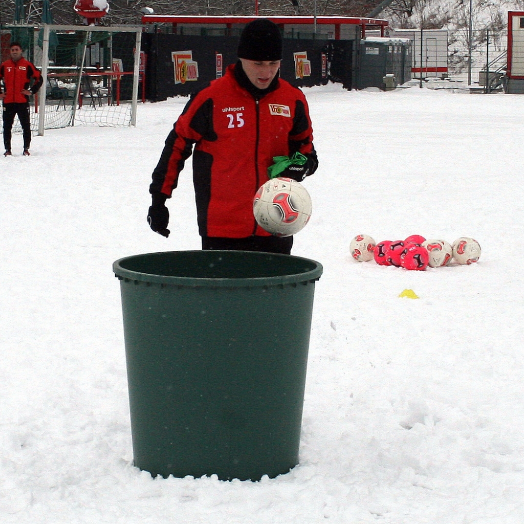 Was tun, wenn man als Cheftrainer bei der morgendlichen Platzbegehung knöcheltief im Schnee steht? Richtig, man kombiniert Athletik mit Zielschussvarianten und erhält als Ergebnis den schweißtreibenden und dem Biathlon verwandten „Unionathlon“.