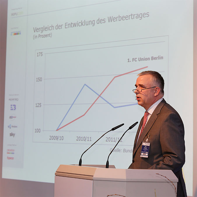 Neues Stadion, neue Agentur, alte Marke: Umsatzverdopplung bei „Eisern Union“ lautete der Titel des Vortrages, mit dem Union-Präsident Dirk Zingler am 18. Februar den SpoBiS 2013 in Düsseldorf eröffnete. Dabei zeichnete er die Entwicklung der Eisernen insbesondere seit dem erneuten Aufstieg in die 2. Bundesliga im Sommer 2009 nach und nahm die Zuhörer mit auf einen außergewöhnlichen Weg: