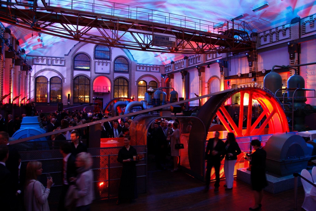 Die gewaltigen Pumpmaschinen des alten Wasserwerkes am Hohenzollerndamm bildeten die prächtige Kulisse für das Sponsorentreffen des 1. FC Union Berlin. Am Freitagabend begrüßten Union-Präsident Dirk Zingler, Geschäftsführer Oskar Kosche und Vermarktungsleiter Jörg Taubitz die Vertreter von rund 150 wirtschaftlichen Partnern der Eisernen, die gemeinsam mit den Mitgliedern von Aufsichtsrat, Präsidium und Ehrenrat sowie der gesamten Mannschaft und zahlreichen Mitarbeitern der Geschäftsstelle ein buntes Showprogramm und kulinarische Köstlichkeiten genossen.