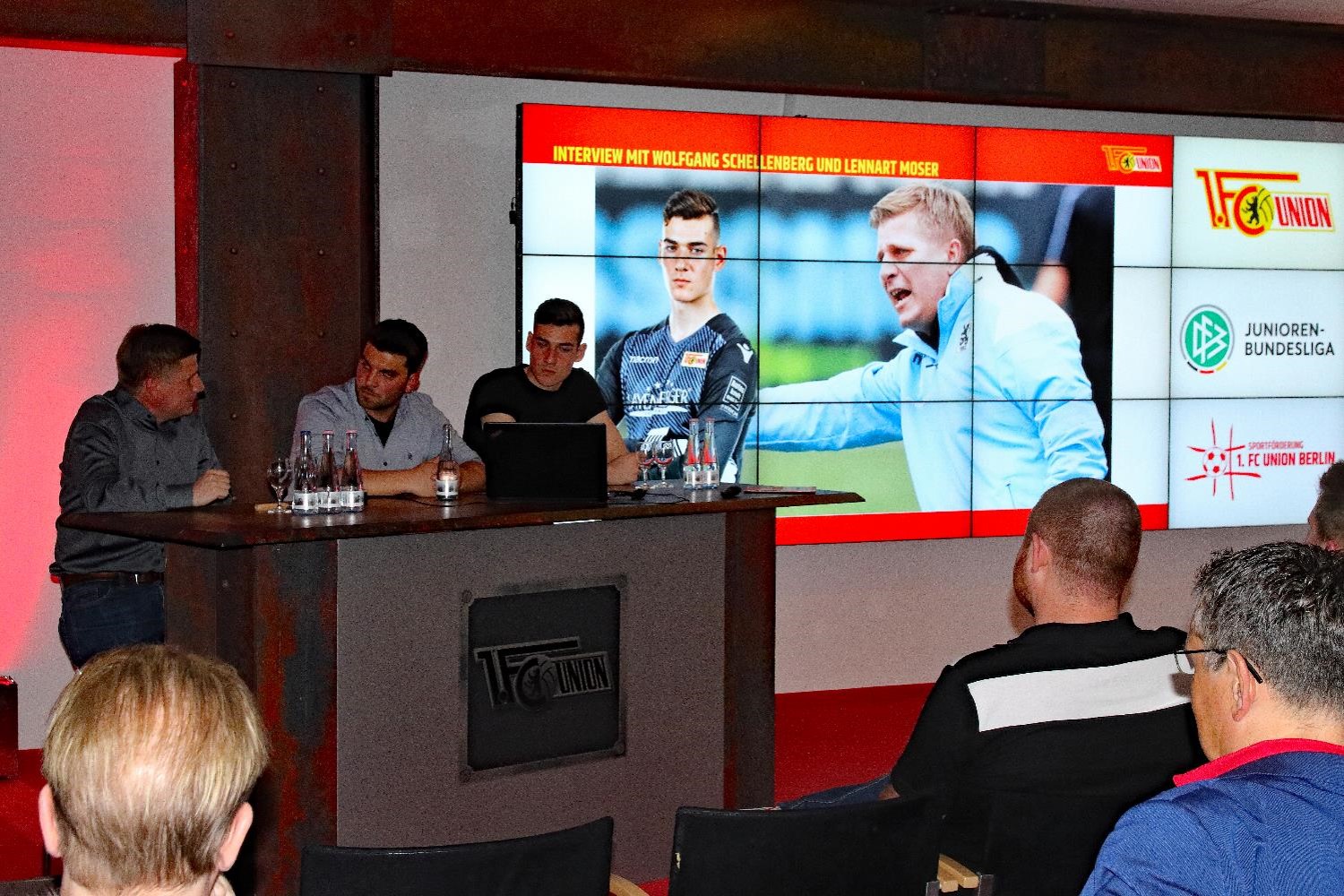 Den Sprung in den Profi-Kader zu schaffen ist der Traum eines jeden Nachwuchsspielers. Wie dies gelingen kann, davon berichtete Lennart Moser in einer kleinen Talkrunde. Die Nummer Eins im Tor der A-Junioren unterzeichnete vor kurzem einen Profivertrag bei den Eisernen und ist seitdem fester Bestandteil des täglichen Trainingsbetriebs der Lizenzmannschaft.