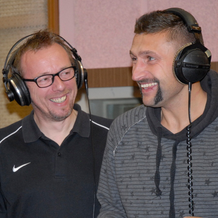 Zur letzten Aufnahmesession am vergangenen Sonntag (20.10.2013) hatten sich Roland Krispin und Christoph Thiel einen Chor gewünscht und ein paar Wunschkandidaten eingeladen. Umso größer dann die Freude, als auch wirklich alle kamen: die „Lütte“ Angelika Mann, Dirk Zöllner, Coolhansen und Sohn Jonas, Christian Arbeit und Union-Kapitän Torsten Mattuschka schmetterten gemeinsam die Zeilen „Hier sind wir zu Haus, hier sind wir geborn. Hier ist unser Eisernland. Wir sind Union!“. Ein Hauch von „We are the world“ im Studio P1 in der Nalepastraße.