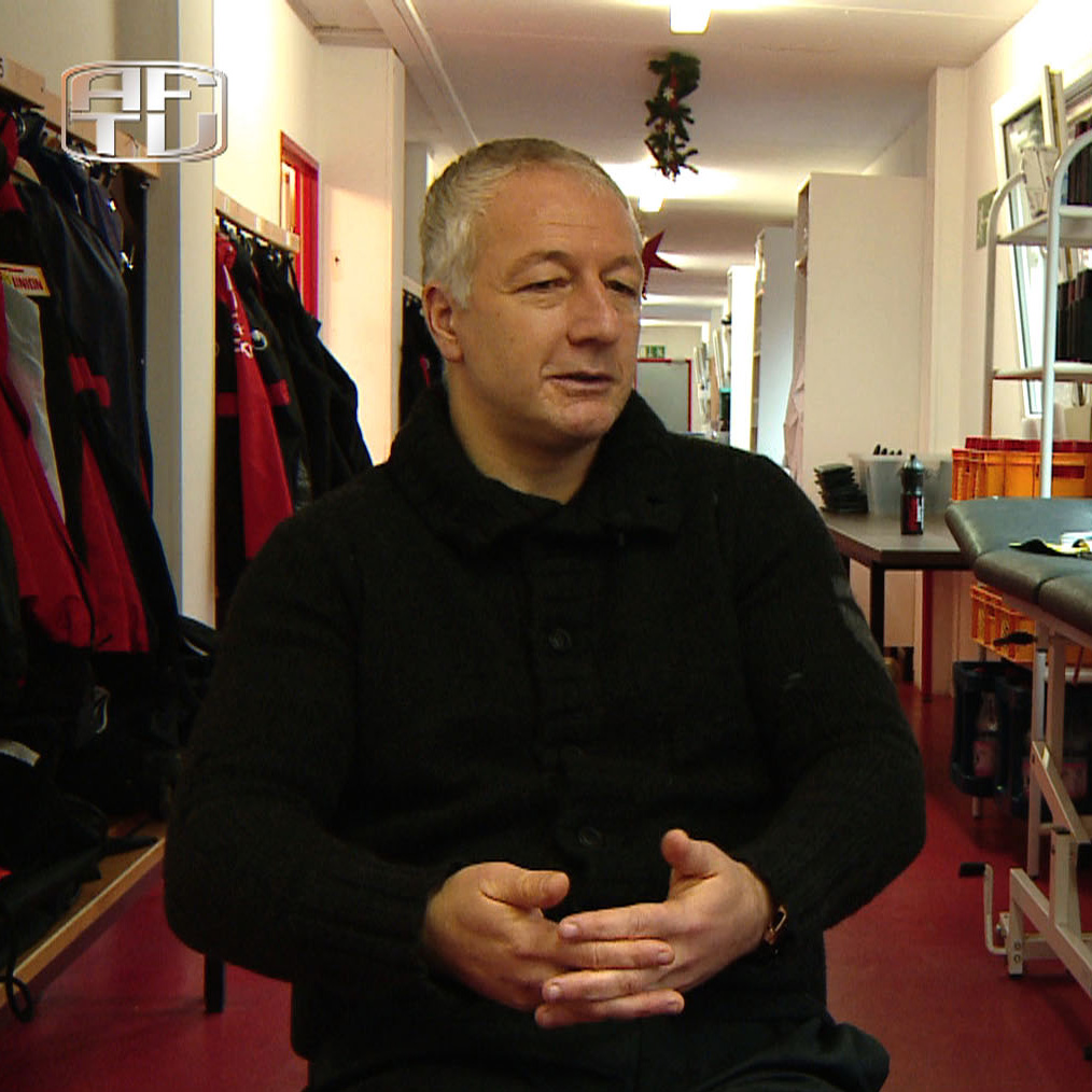Wie war das eigentlich damals als Union-Profi in den Neunzigern? Wie kam es 2007 zur Verpflichtung als Co-Trainer? Und wie verhielt es sich nun eigentlich mit der Idee, Schönheim links offensiv spielen zu lassen? Antwort auf diese Fragen gibt es im großen AFTV-Interview mit André Hofschneider. Wir trafen unseren Co-Trainer im Kabinentrakt der Profis.