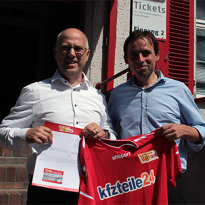 Björn Schmadtke, Ticketing-Leiter des 1. FC Union Berlin, überreichte zusätzlich zur Dauerkarte ein rot leuchtendes Heim-Trikot. „Über den großen Zuspruch freuen wir uns sehr. Heute werden wir den alten Rekord von 5.195 Dauerkarten knacken“, ist sich Schmadtke sicher.