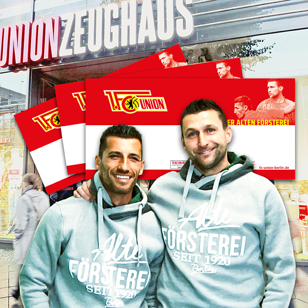 Zwischen 16 und 17 Uhr sowie zwischen 21 und 22 Uhr stehen Karim und Tusche persönlich hinter dem Verkaufstresen und kümmern sich um den Vorverkauf. Natürlich wird auf Wunsch auch jedes verkaufte Ticket von den Beiden signiert. Ganz frisch eingetroffen im Union-Zeughaus ist übrigens auch die Fanartikel-Kollektion zum Abschiedsspiel, ob T-Shirt, Schal oder Tasse: Einmal Unioner, immer Unioner!