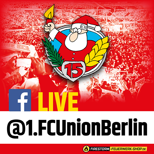 Für alle, die nicht vor Ort dabei sein können, bietet der 1. FC Union Berlin gemeinsam mit Firestorm Fireworks eine Liveübertragung auf Facebook an. Einfach um 19:00 Uhr das Facebook-Profil @1FCUnionBerlin öffnen und teilhaben an der festlichen Stimmung im Rot-Weißen Wohnzimmer.