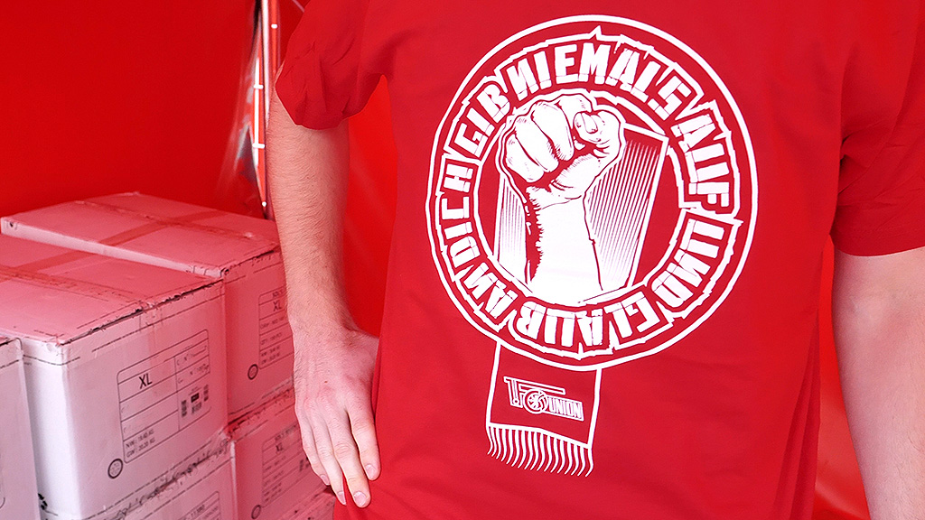 Mit 20.000 roten T-Shirts, bedruckt mit einem eigens entworfenen Motiv der Szene Köpenick und produziert vom 1. FC Union Berlin wird das möglich.