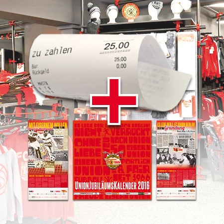Anlässlich der Partie gegen 1860 München am Sonntag, dem 14. Februar 2016 packen wir ab einem Einkaufswert von 25 Euro den Jubiläumskalender 2016 kostenfrei mit in die Tüte.