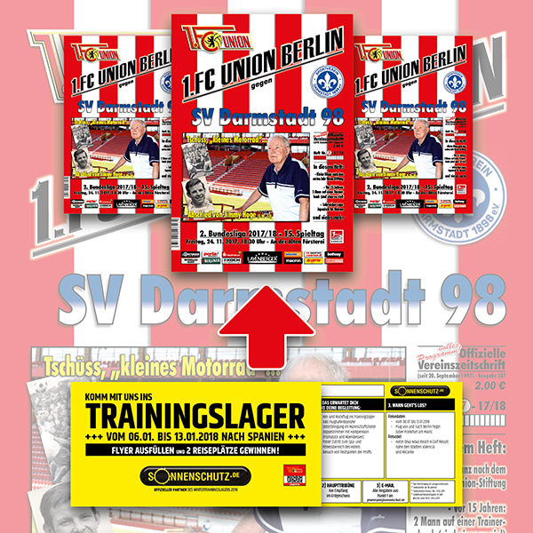 Zudem wartet in der aktuellen Ausgabe eine tolle Möglichkeit auf Euch. Der Eisernen Vereinsschrift liegt ein Flyer von Union-Sponsor sonnenschutz.de bei, mit dem jeder die Chance hat, eine Reise für zwei Personen ins Union-Trainingslager im Januar 2018 (6.01. – 13.01.2017) zu gewinnen. Dem kalten Berliner Winter entfliehen, mit den Profis in den Flieger steigen und die warme Sonne Spaniens genießen – klingt verlockend!