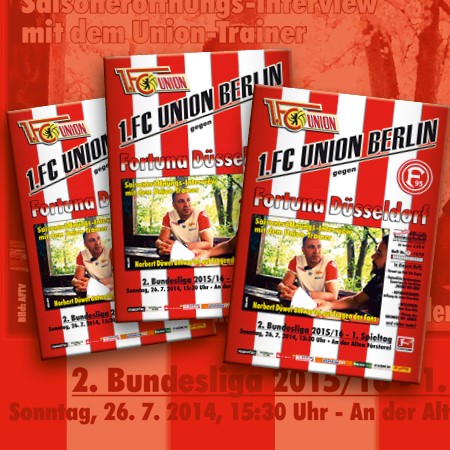Wenn am Sonntagnachmittag (26.07.2015) um 15:30 Uhr das erste Heimspiel des 1. FC Union Berlin der Saison 2015/2016 im Stadion An der Alten Försterei angepfiffen wird, darf natürlich eine Sache nicht fehlen: das Programmheft! Auf insgesamt 78 vollgepackten Seiten erwartet euch wie immer viel Wissenswertes rund um die Eisernen.