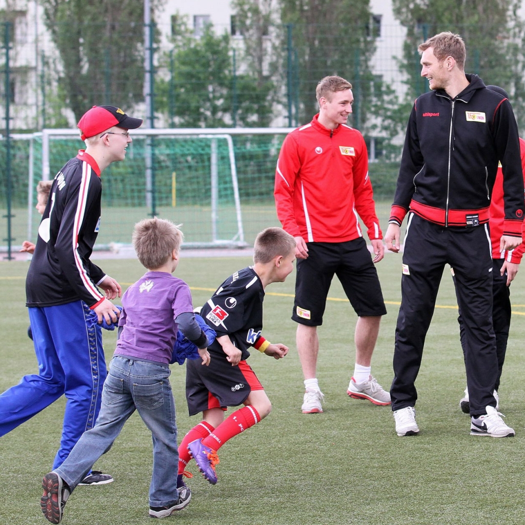 Nach der Begrüßung durch Jörg Taubitz, Leiter des Union-Vermarktungsteams, wurde es sportlich erwartungsgemäß hochinteressant. Zwei Mannschaften lag der Untergrund augenscheinlich ganz besonders gut. Während auf den Nebenplätzen die Profis Christoph Menz, Kilian Pruschke und Christian Stuff ihr fußballerisches Wissen in diversen Übungsformen mit etwa 30 Kindern teilten, kristallisierten sich aus dem 30 Teilnehmer starken Starterfeld zwei bemerkenswert schlagkräftige Formationen heraus.